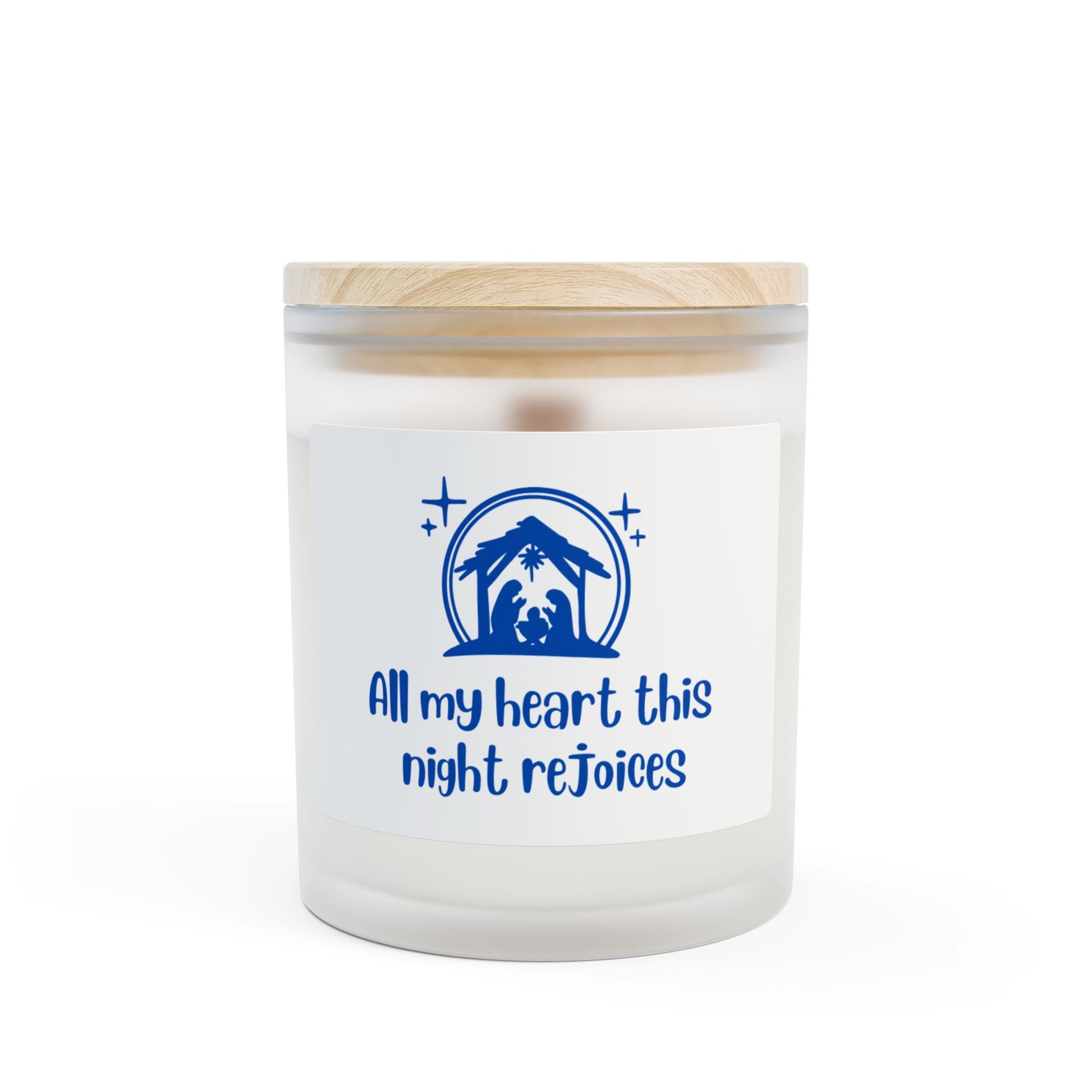 Nativity Frosted Glass Candle — "All My Heart This Night Rejoices" (11 oz)